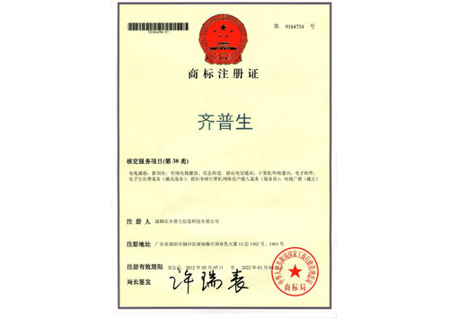 • 齊普生商標注冊證