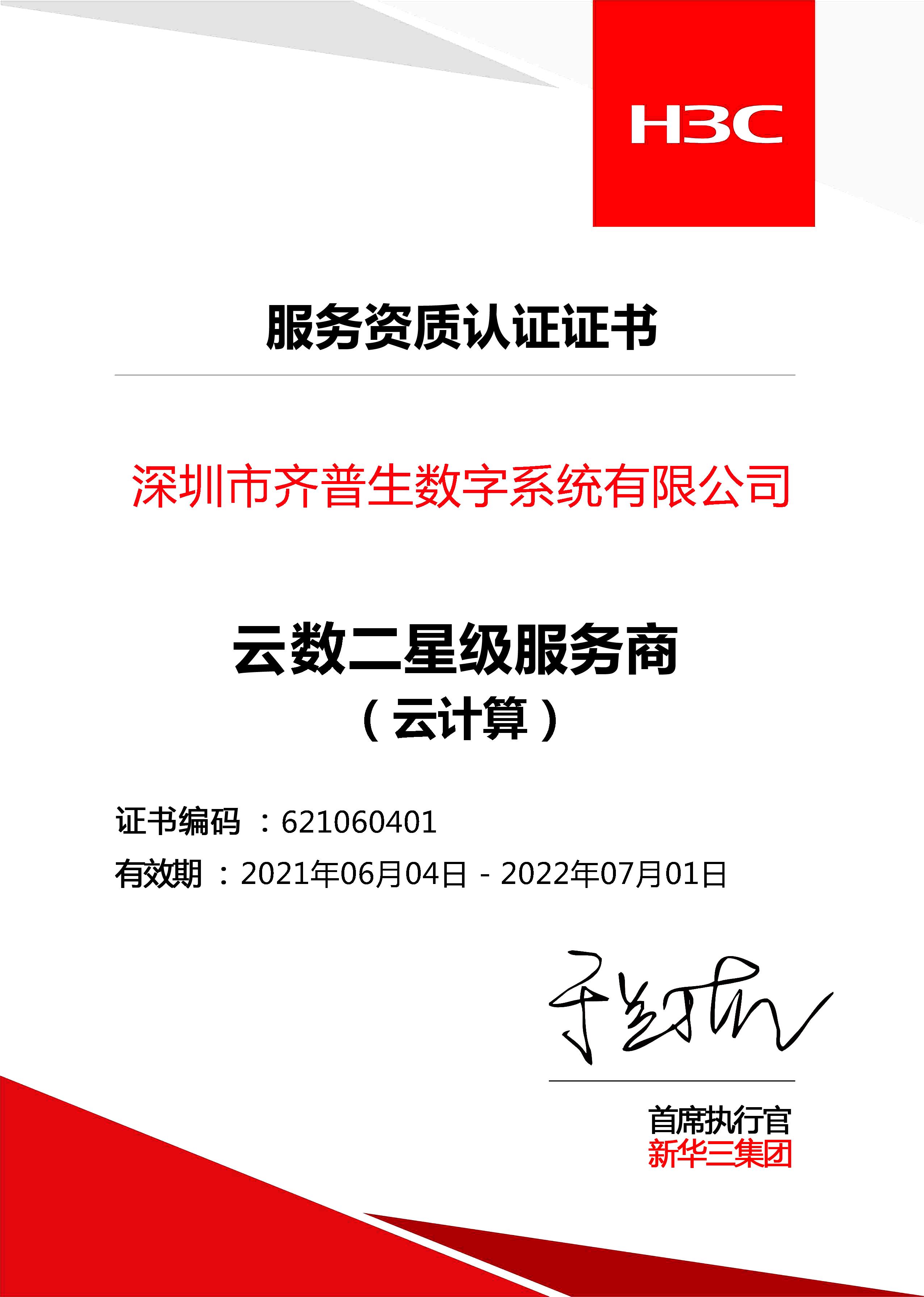 • 云數二星級服務商-云計算